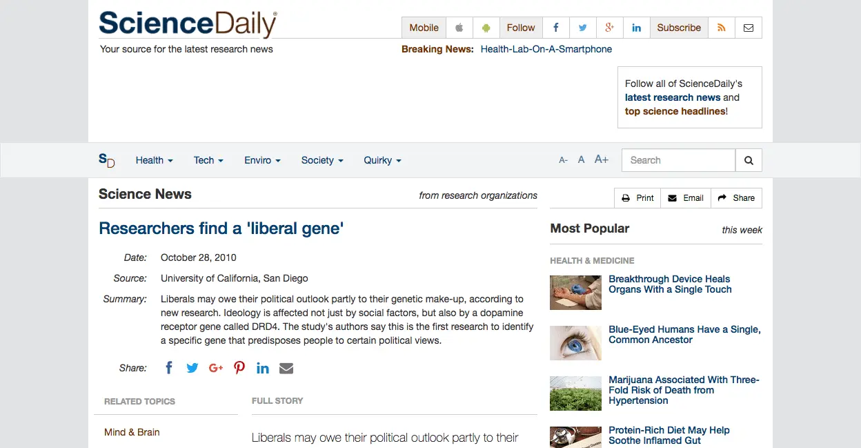 Researchers find a 'liberal gene'