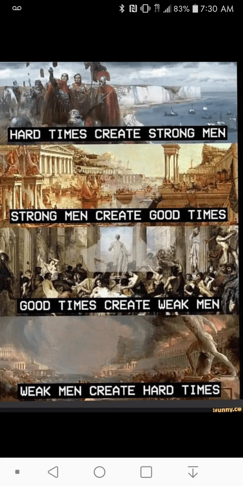 Wise words. Reminds of this meme.“A democracy cannot exist as a permanent form of government. It can only exist until the voters discover that they can vote themselves largesse from the public treasury. From that moment on, the majority always votes for the candidates promising the most benefits from the public treasury with the result that a democracy always collapses over loose fiscal policy, always followed by a dictatorship. The average age of the world's greatest civilizations has been 200 years. These nations have progressed through this sequence: From bondage to spiritual faith; From spiritual faith to great courage; From courage to liberty; From liberty to abundance; From abundance to selfishness; From selfishness to apathy; From apathy to dependence; From dependence back into bondage.”