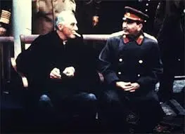 OH in case you are too stupid or too young the guy on the left is FDR President of the USA and the guy on the right Murdered 20 million of his own people!