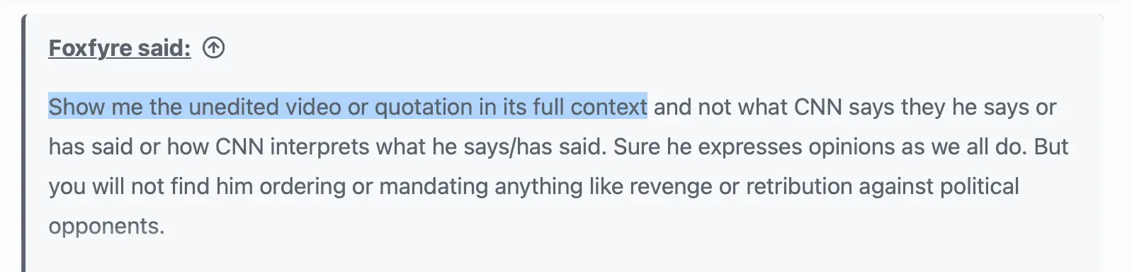 And further that Truth Social post was in response to the weaponization of the Biden government appointing a political lackey to go after Trump and he retorted that he would appoint a REAL special prosecutor to go after Biden. But that would be to investigate the accusations of malfeasance re Hunter et al and possible bribery/payoffs to Joe himself and not in retaliation for what Biden has done to him (Trump).