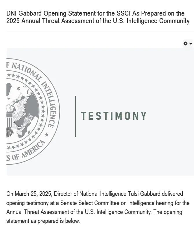 DNI Gabbard Opening Statement for the SSCI As Prepared on the 2025 Annual Threat Assessment of the U.S. Intelligence Community | Office of the Director of National Intelligence