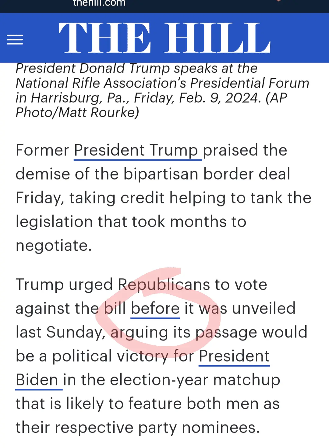 Sure it does... Trump explains why the bill sucks and never, ever says it was to keep keep Biden from getting a political win.That link doesn't prove your point.