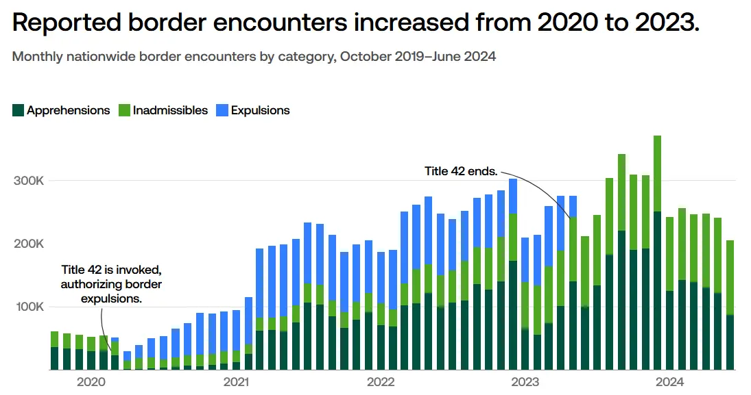 The US has reported nearly 11 million unauthorized border encounters between October 2019 and June 2024.