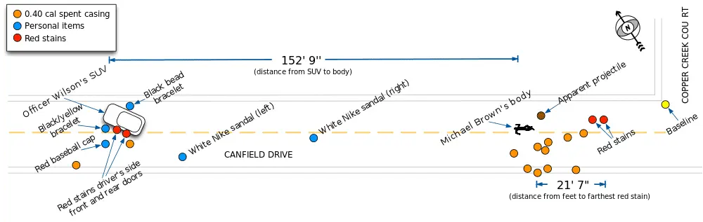 Look where the spent casings are you idiot. Wilson was going after Brown and was 10 to 15 feet from him when Brown turned around and charged him. Wilson then began to back up, telling Brown to stop. When it was clear Brown was not going to stop and also had his left hand in his trousers, suggesting he might be reaching for a gun, Wilson fired.