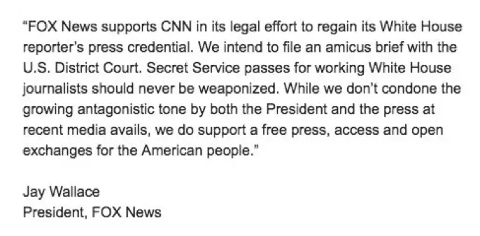 The President of Food News just announced support for CNN against Trump's White House, which took away Acosta's credentials for no good reason.