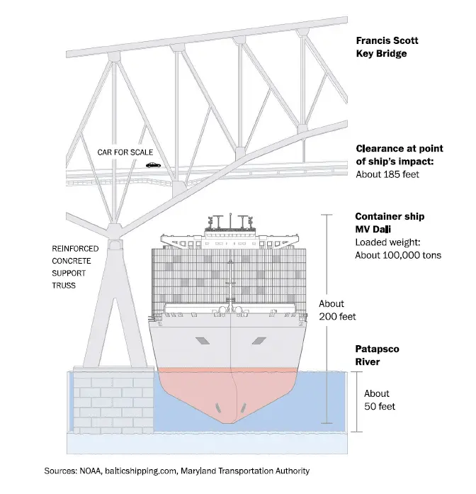 The I-35W bridge, a federal interstate highway that’s a major artery through Minneapolis, is a much busier thoroughfare, carrying about 140,000 vehicles a day. That compares to only about 31,000 daily crossings for the Maryland bridge.