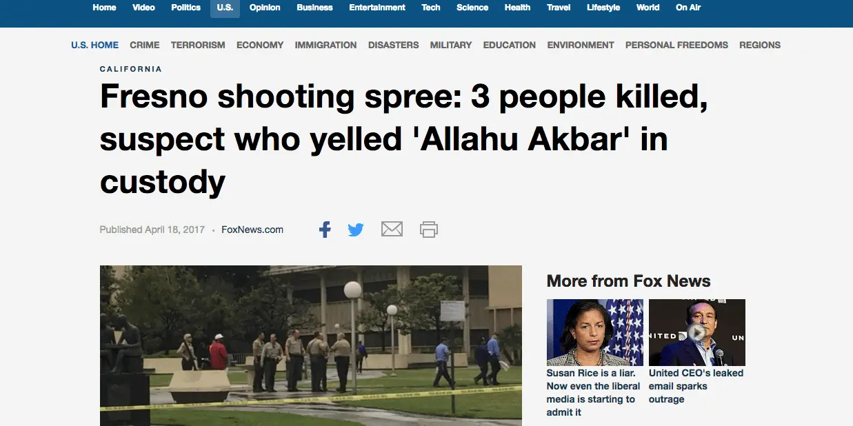 Fresno shooting spree: 3 people killed, suspect who yelled 'Allahu Akbar' in custody