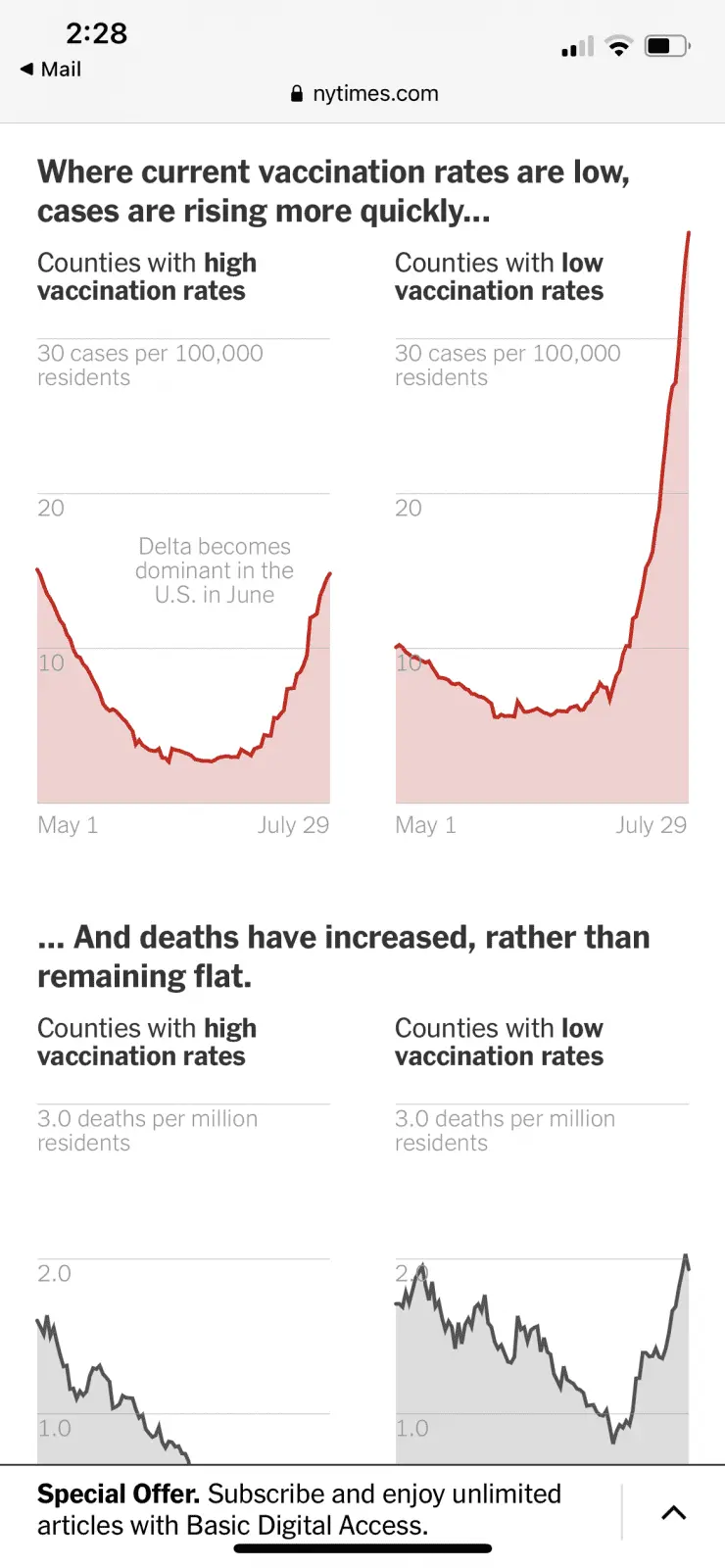 As Covid Cases Rise All Over U.S., Lower Vaccination Rates Point to Worse Outcomes (Published 2021)