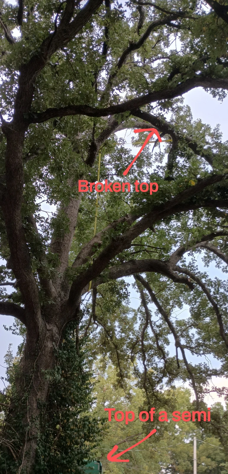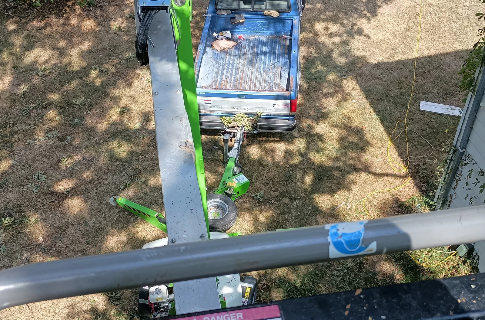 Didn't bother calling the tree guy for an estimate. Figured at least a grand. Only $230 for 24 hours to rent a trailer mounted boom lift.