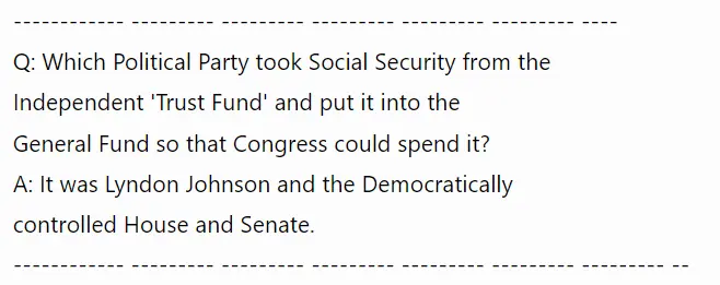 Q: Which Political Party took Social Security from the