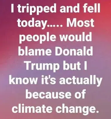 It's true--the climate changed on the outside of my cocktail glass and the dripping condensation made the sidewalk wet and slippery. After my sixth Zombie, I slipped on the wet concrete and fell. Damn global warming---it's all Greta's fault.