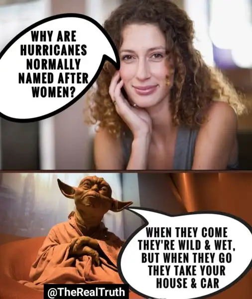 That was the case when this joke was new, but it has been decades since genders get equal treatment in naming hurricanes.