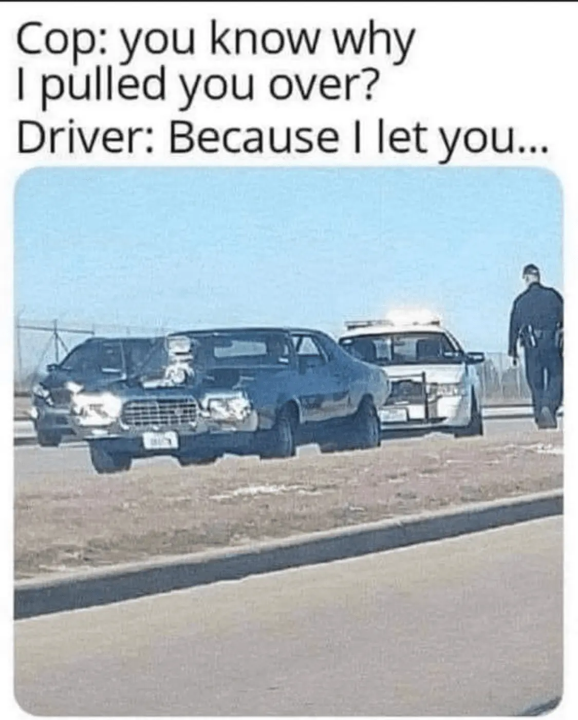 Lucky you, mine said, "You were going 75 in a 55 and I'm going to give you a ticket." LOLCop pulled me over the other day doing 60 in a 45. He said to me, "Boy, I've been waiting for you all day."