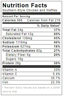 Freshly-made Beligan waffles and hand-battered chicken bites served with bourbon maple syrup and topped with garlic cream sauce and scallions