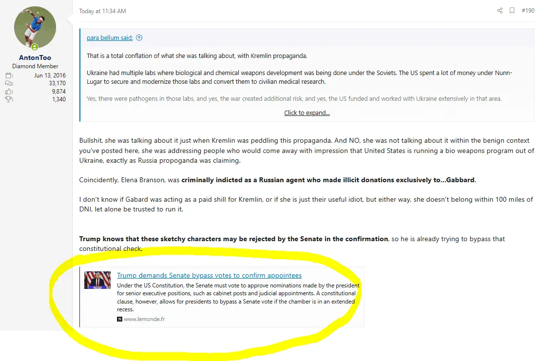 You've asked HOW Trump can bypass Senate confirmation for Tulsi and I gave you the answer.What does that headline propaganda have to with Gabbard and your claims about her?