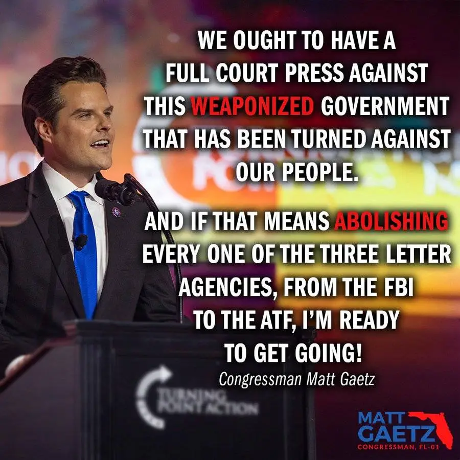 That's not what he said. Learn to read.Gaetz wants to abolish the FBI