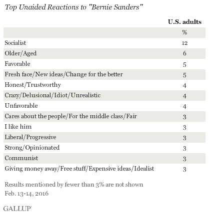 Hillary and Bernie may be Old,White, Millionaire, Elitist, and Self-Serving, but that's not the top things they are known for. 'LIAR', 'THIEF', and 'SOCIALIST' top the list of reactions from Gallop Poll surveyed citizens.