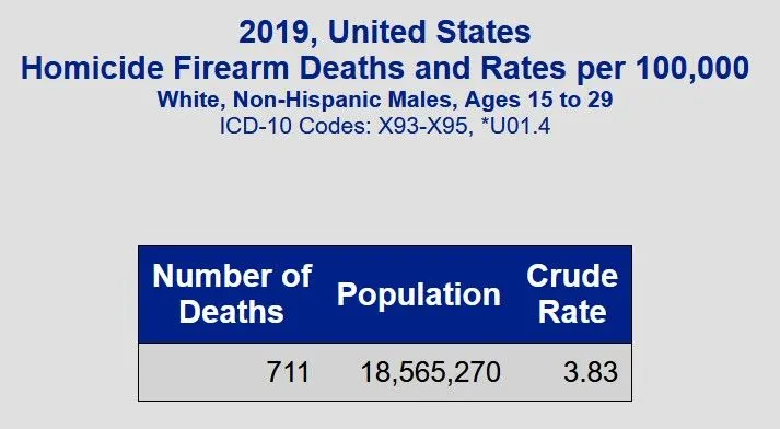 Is it just the availability of guns? If it was just the availability of guns why isn't the gun murder rate a constant across all demographic sectors? Why do young White men have a gun murder rate that is 20X lower than young Black men?