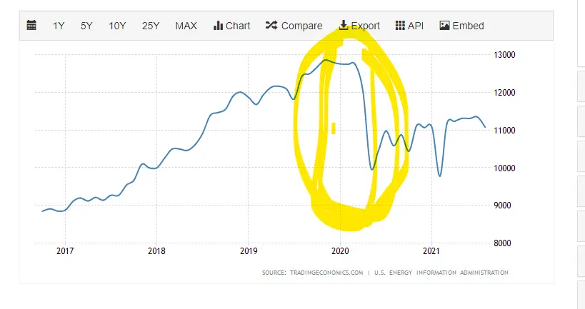 Again the cuts to US production happened under Trumpybear's last year in office.