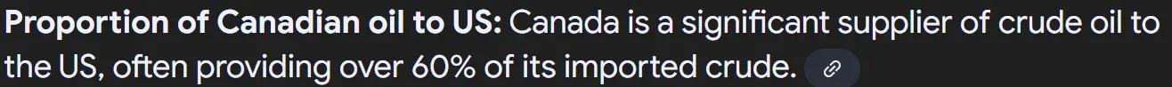 So, we sell 40% of the crude we get from Canada to the rest of the world. Now I will amend my statement somewhat. While 97% of it reaches us, 97% of it does not get consumed by us. If the US refilled the SOR (Strategic Oil Reserve) and then supplied the rest of it to the US, the prices would be significantly lower. But I'm no economist by any stretch.