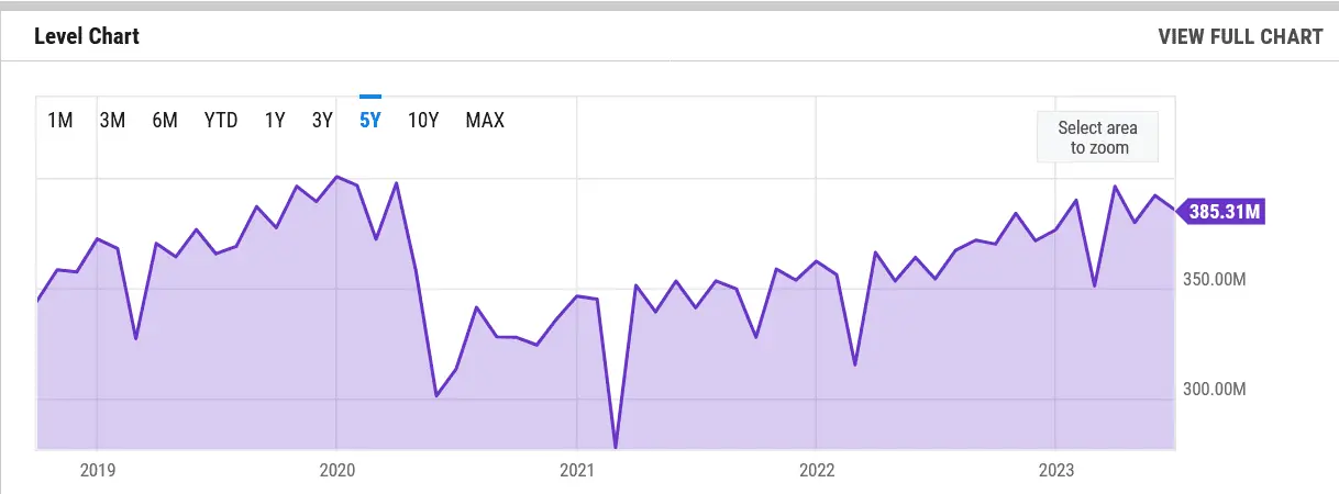 By the way, are you aware the only months that production was higher than the average of the last couple of year including present production level was August 2019 through March 2020 when they shut it down for the pandemic and got the glut out of the system, worldwide. Other than that, it was nowhere near today's production. You are aware, we are the world's leading producer, right? Oil, our biggest export on the balance of trade worldwide, right? The numbers from the industry are out there. I like the YCharts and it isn't hard to read or understand. Here is a snapshot showing we were at 385.31 Million Barrels a day.