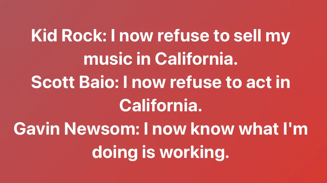 What are you whining about Now, old man.Gavin Newsome imposed massive damages against California and a warning is, would you like that done to all of America?