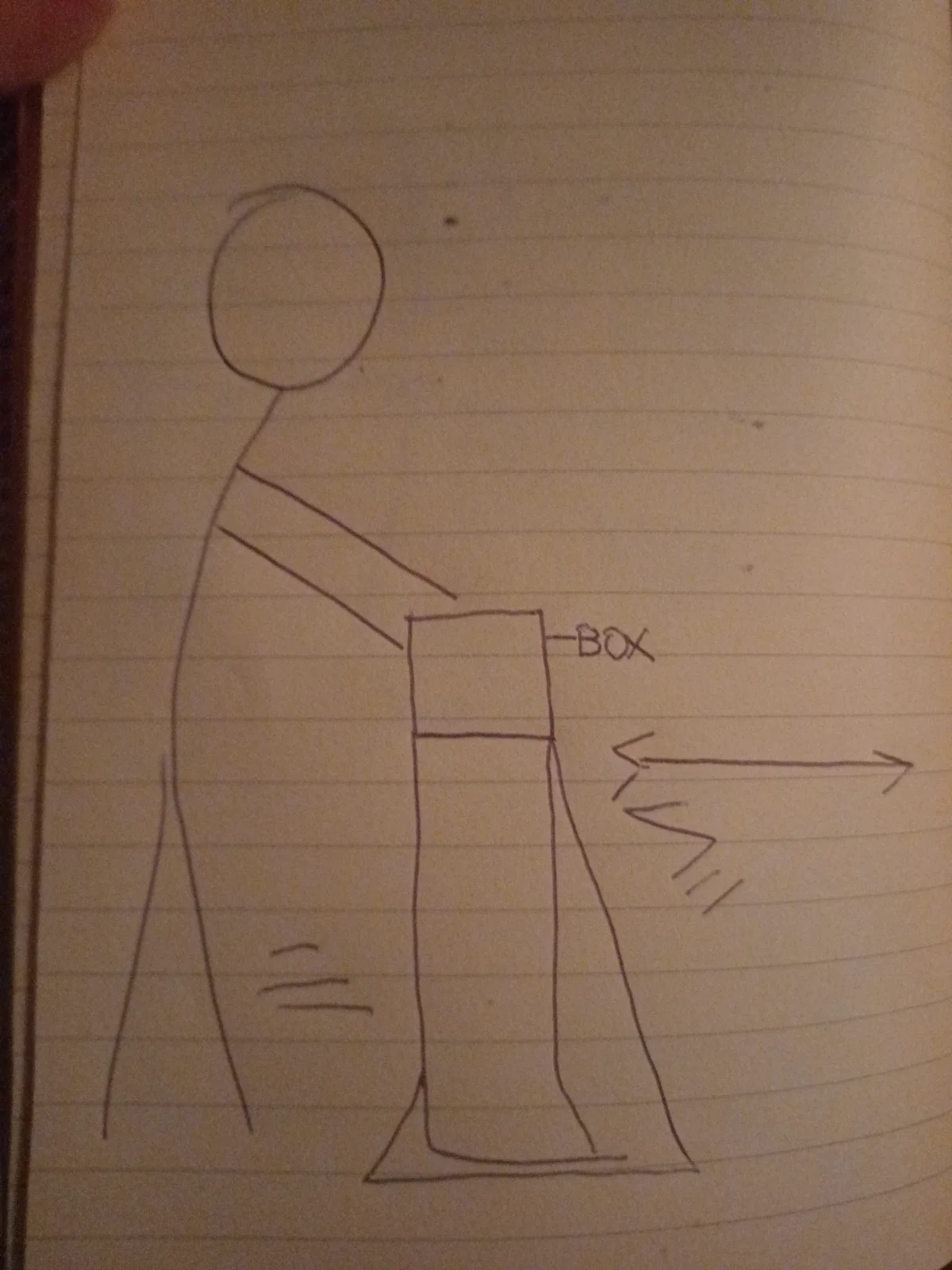 no mechanical energy moves a weight unless your counting friction. If you want, I could draw a box and a guy moving the box with arrows pointing the direction the box is moving?