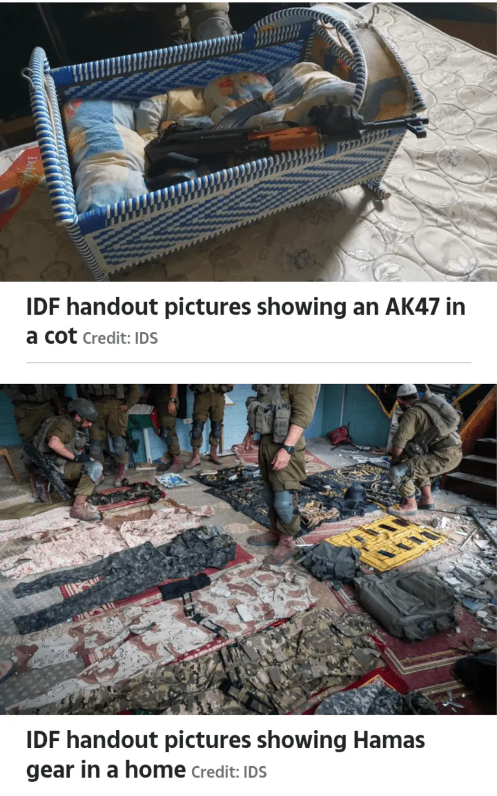 Hamas 'cowards' stash AK-47s in babies' cots and 'send kids to frontline'