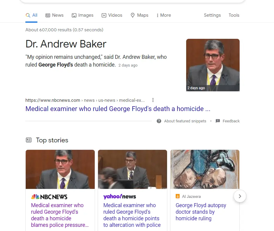 Strangely, the findings of Dr. Andrew Baker, the actual person who examined Floyd, appear to be at odds with other expert witnesses.