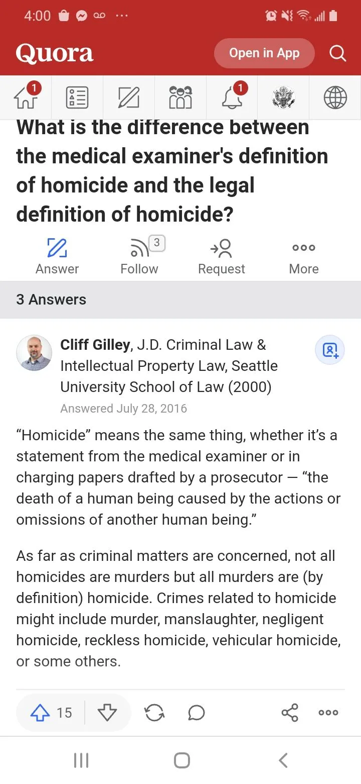 In Baker’s field of forensic pathology, homicide means “death at the hands of someone else.”