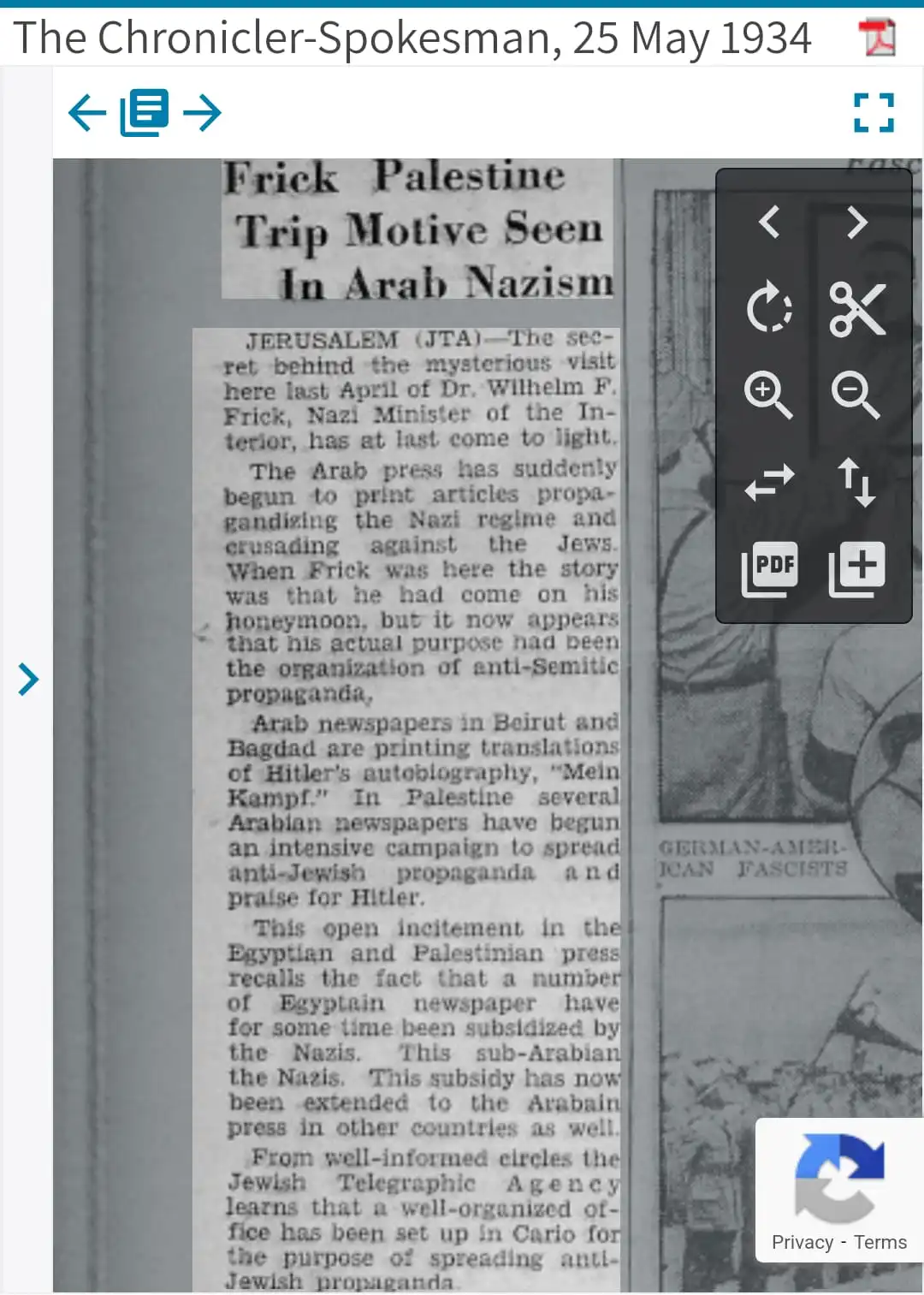 In 1938, Arabs respond to Hitler’s words with cheers from the newspapers [for example, in the Petersburg Times – Sep 16, 1938].