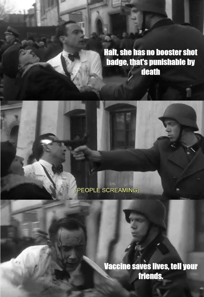 You're actually correct. Many here have no idea who Nazis are and what they did. Not sharing the opinion, or disagreement doesn't make you Nazi. However, calling for compulsory vaccination, with unproven product that causes more harm than every previous vaccines combined, threatening to take people livelihood, making their lives miserable, and threatening to lock them up in camps... etc. That IS what Nazis actually did to certain groups of people. You know what they also did? They were injecting people with experimental drugs, and because of that, all nations agreed that cannot happen again with signing Nuremberg Code. What you're calling for is the same thing Nazi did. What that makes you than?You argue here on your own like a typical structural Nazi who calls all other people Nazis when they don't share your opinion.