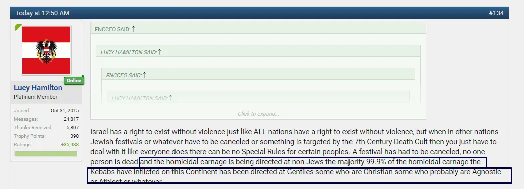 Yes I already pointed that to fnnceo in the below post I highlight the section, his response to me was to COMPLETELY IGNORE that and instead to yes you got it he called me anti-Semitic because I dared to put Israel into the SAME category as ALL other nations on this planet, as I say the Chauvinism is THEIRS and their Hangers On and not mine.