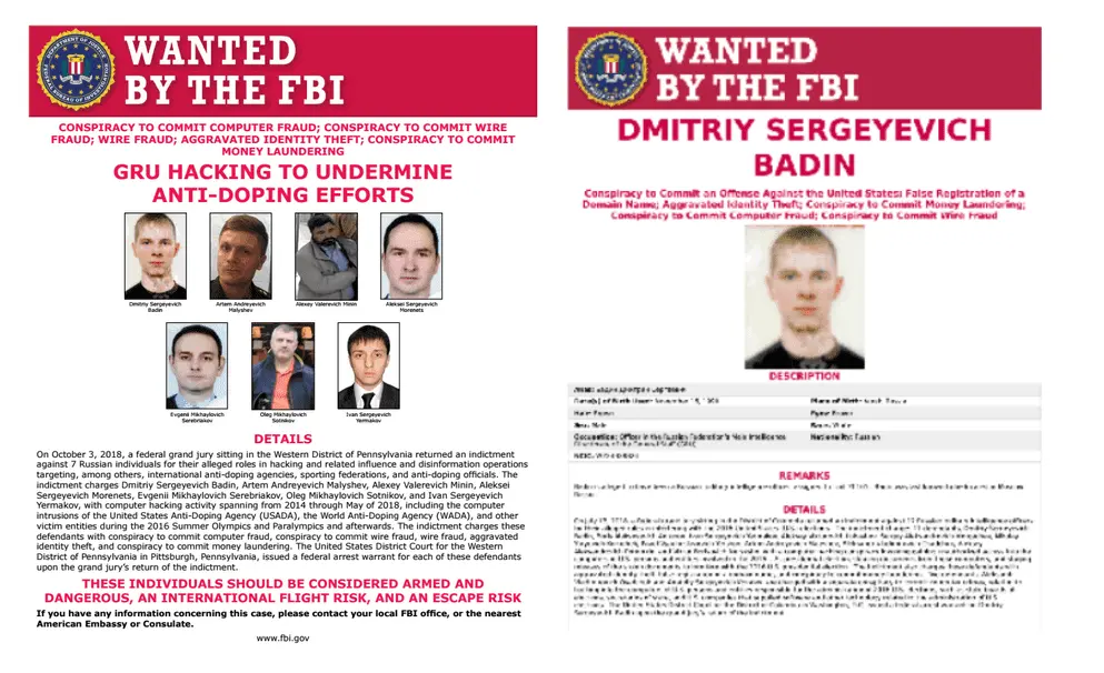 According to data from the US Federal Bureau of Investigation (FBI), Badin lives in Russia and works for GRU. The FBI claims he is also behind the alleged 2016 election meddling in the US as well as a hacker attack on the World Anti-Doping Agency (WADA).