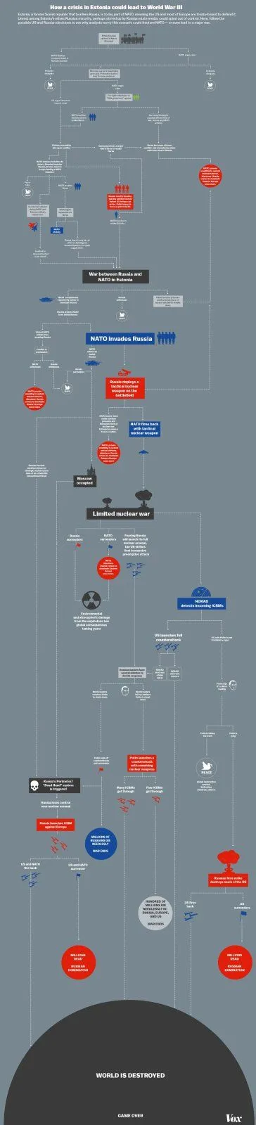You see, Neo-Nazi Ukraine (in it's old borders) in NATO means, for starters, discrimination, abusing and genocide of fifteen-twenty ethnic Russians and other Russian speaking people (like Jews, Hungarians and Greeks). Then, losing Sevastopol means losing control of Black Sea which means severe economic crisis. But what is most important, American medium-range missiles near Kharkov are more dangerous for the Russia than Soviet missiles on Cuba were dangerous for the USA. Back in 1962 the USA have a simple choice:So up to 20 million dead Russians is acceptable but a Ukraine in NATO is not? Sorry, not buying it.