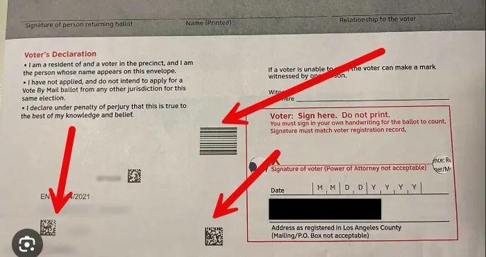 Sir, the fact that there are QR/Bar Codes on ballot packages (envelopes) is not secret, that has been going on for years. When a mail-in ballot is requested, the pacakge is generated for that individual, when the package is returned it gets scanned back into the system to track receipt.