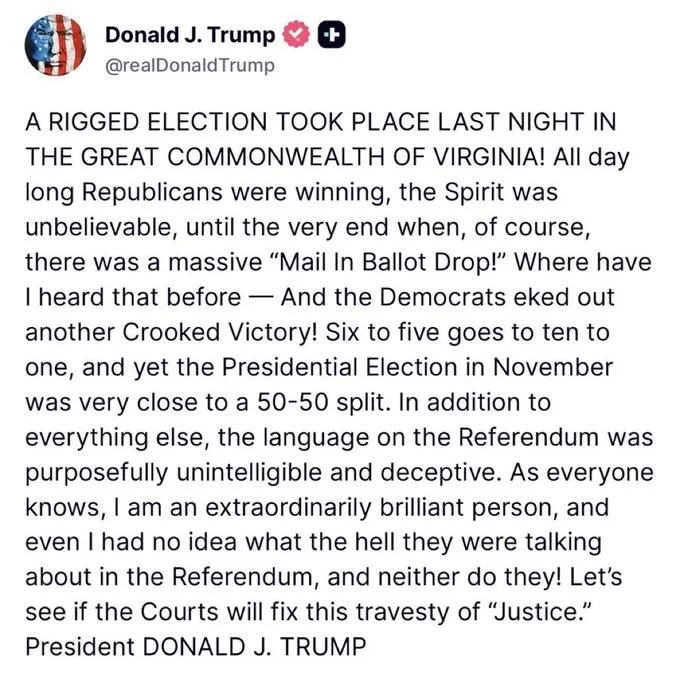 I'm saying that I think that the election in VA was rigged and that the Federal government set a trap to catch the fraud.ummm…