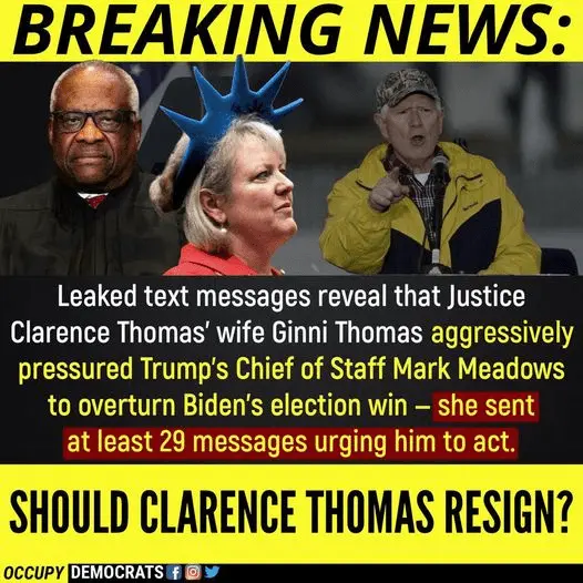 The New Yorker reports Justice Clarence Thomas' right-wing extremist wife co-hosted a banquet for leaders of the seditious “Oath Keepers” militia group, indicted for the Jan 6 attack.