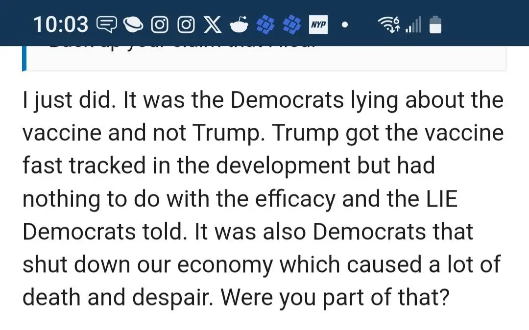 Both Democrats and Trump pushed for people to get vaccinated. It’s completely inconsistent to blame one for deaths and not the other.