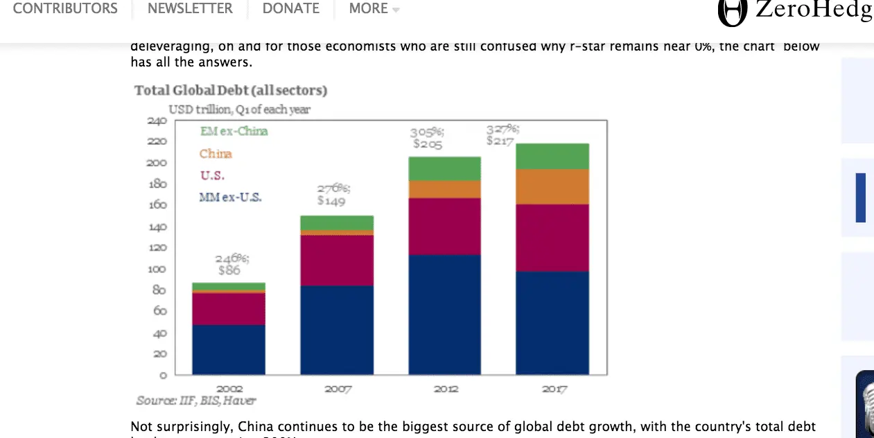 Global Debt Hits A New Record High Of $217 Trillion; 327% Of GDP | Zero Hedge