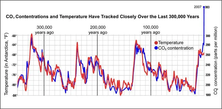 Which A) suggests CO2 isn't all it's cracked up to be, it's not like CO2 goes up and temperatures go up automatically and instantly. And B) it suggests the world temperature could rise WITHOUT HUMAN INTERFERENCE, by at least three more degrees.