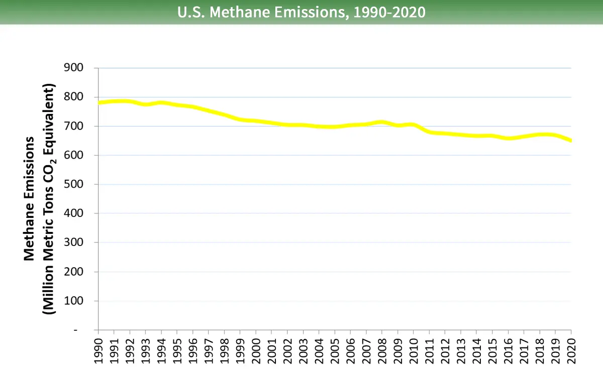 The EPA shows that CH4 emissions isn't increasing for the last 30 years, actually DECLINING for many years.