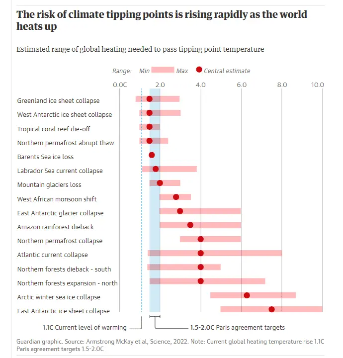 /——-/A recent study find the following climate tipping points nearing certainty.