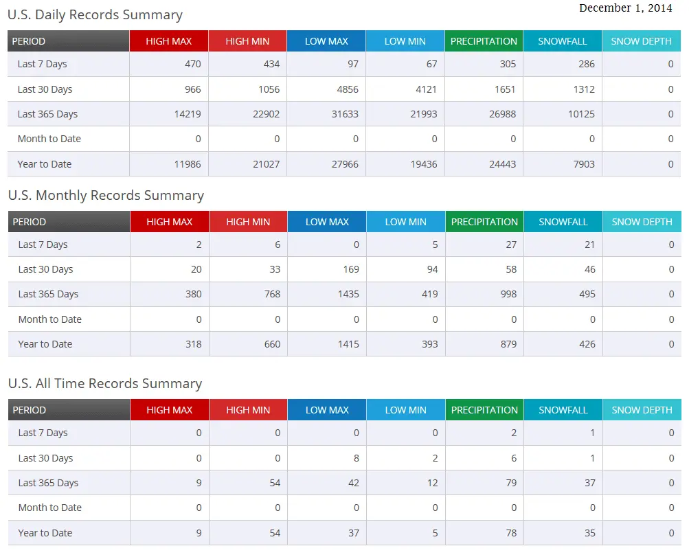Almost 9000 Daily record cold temps in November alone