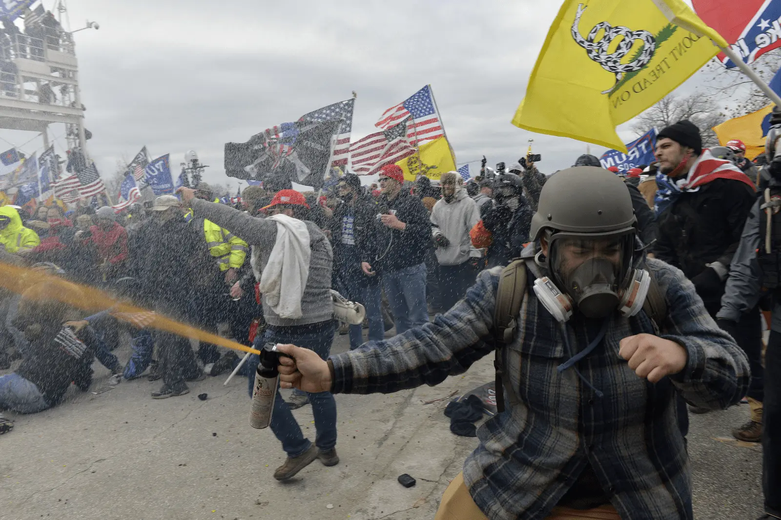 What "protester" brings a helmet, gas mask and bear spray to a peaceful 'protest"?