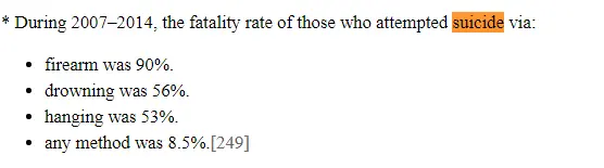And, according to your stat, 9 out of 10 times someone in the US tries to commit suicide with a gun, they are successful.