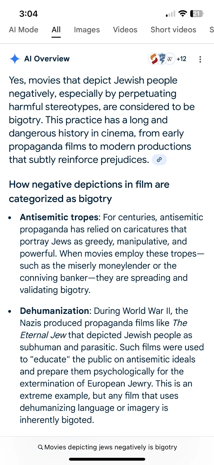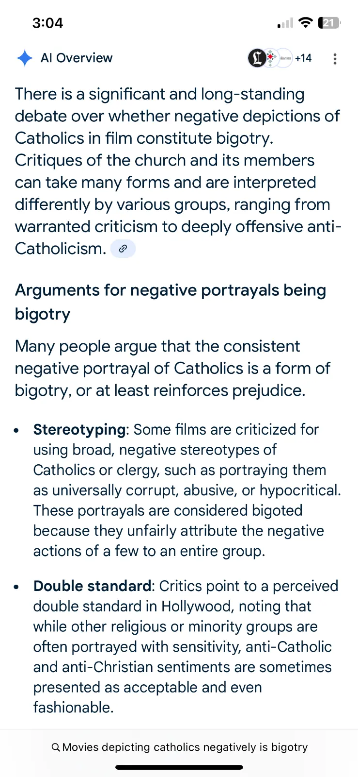 Notice the big difference. It is so obvious. There is a “debate” whether or not it’s OK to depict Catholics negatively in films. But for Jews, it’s automatically antisemitism. That’s garbage. Obviously you could have a movie that depicts violent terrible Jews of history… that’s not a stereotype …that happened. To think otherwise would be some form of a supremacist. There are movies that can depict Catholics in a negative way and be historically accurate.. this is obvious.