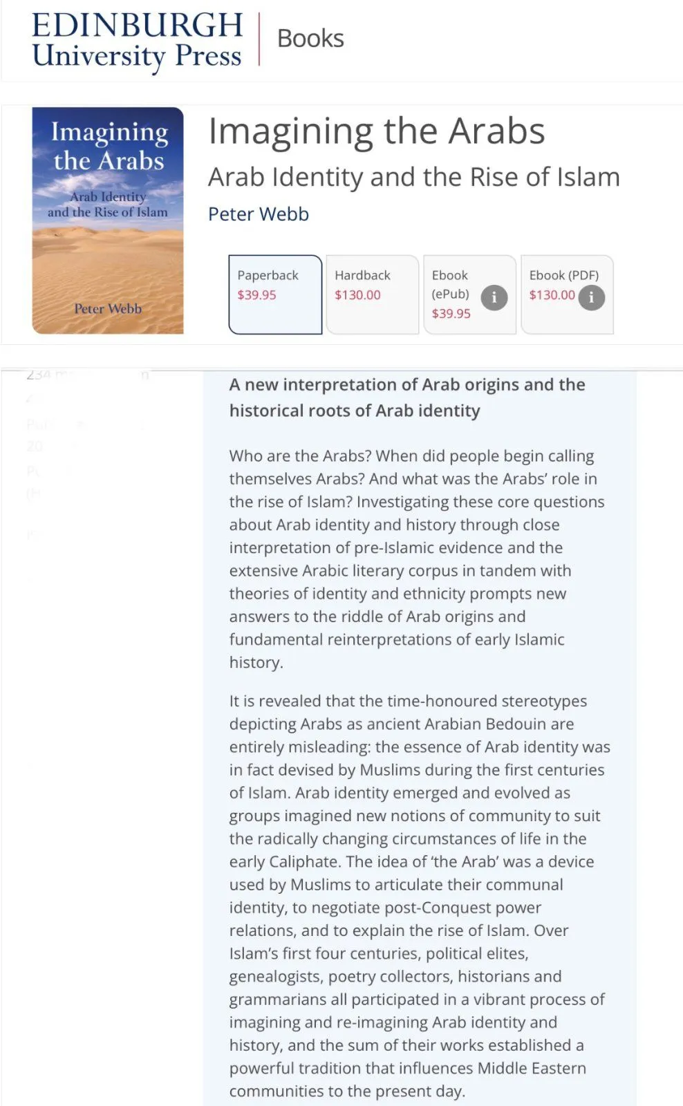 Eminent scholar of Arab history Professor Peter Webb…