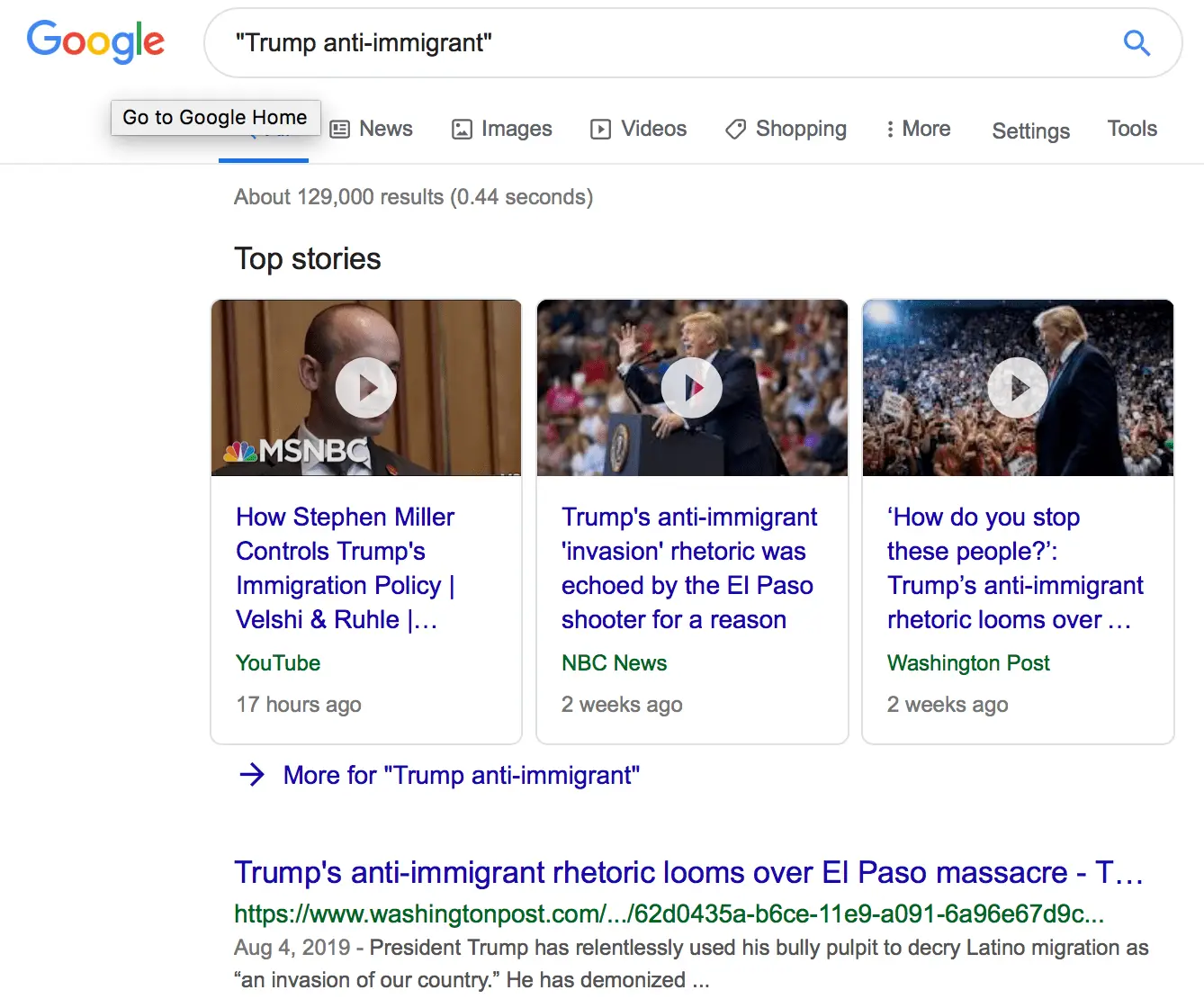 LOOK: 129,000 results for "Trump anti-immigrant"... in spite of the facts that: