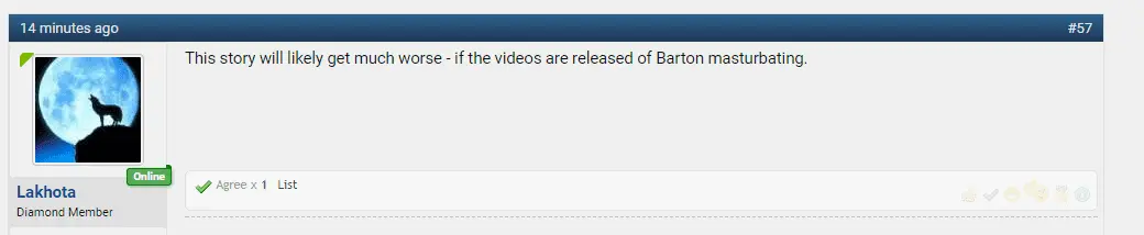 “While separated from my second wife, prior to the divorce, I had sexual relationships with other mature adult women,” Barton, 68, said in a statement first